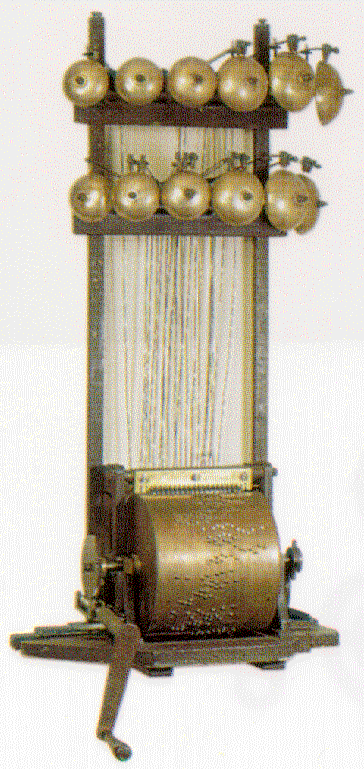 Detail eines Reproduktions-Klaviers „Steinway-Welte“, Notenrollensteuerung.